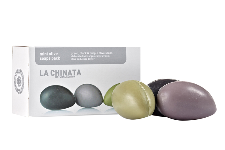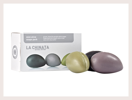 オリーブの実の形をした3種の石鹸は、オリーブの色をイメージして作られており、保湿成分のエキストラバージンオリーブオイルを使用しているので、お肌を清浄にするとともに滑らかな肌に導きます。